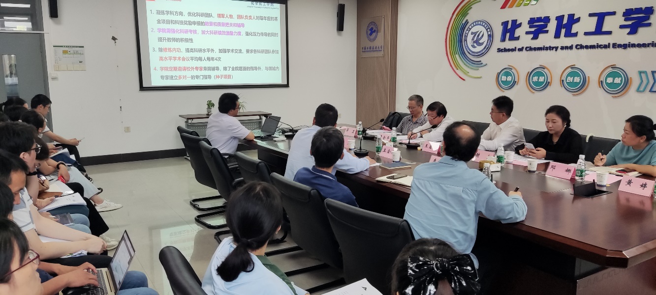 会上,王金果强调,学院领导班子会制定切实可行的方案,确定申报人员名单和种子选手名单,从资源引导、政策引导上,给予科研人员全方位帮助和支持,力争2024年学院在获批国家级科研项目上取得新突破。推动学院科研工作再上新台阶,为实现学校内涵式发展和高质量发展贡献力量。陆杰汇报了化学化工学院近几年国家基金申报情况,分析了目前存在的问题,详细解读了2024年度国家自然科学基金申报工作推进的时间节点和具体工作任务。