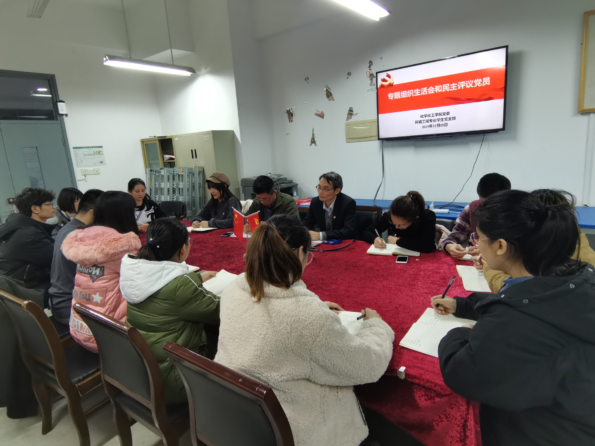 为深入学习贯彻习近平新时代中国特色社会主义思想,根据中央《关于第二批主题教育单位基层党组织召开专题组织生活会和开展民主评议党员的通知》和学校《关于召开“不忘初心、牢记使命”专题组织生活会和开展民主评议党员的通知》,12月5日下午,化学化工学院环境工程学生党支部在实训楼4404会议室召开了专题组织生活会和民主评议党员,会议由党支部书记张晓普主持,学院党委副书记、院长饶品华出席会议,群众代表列席了会议。