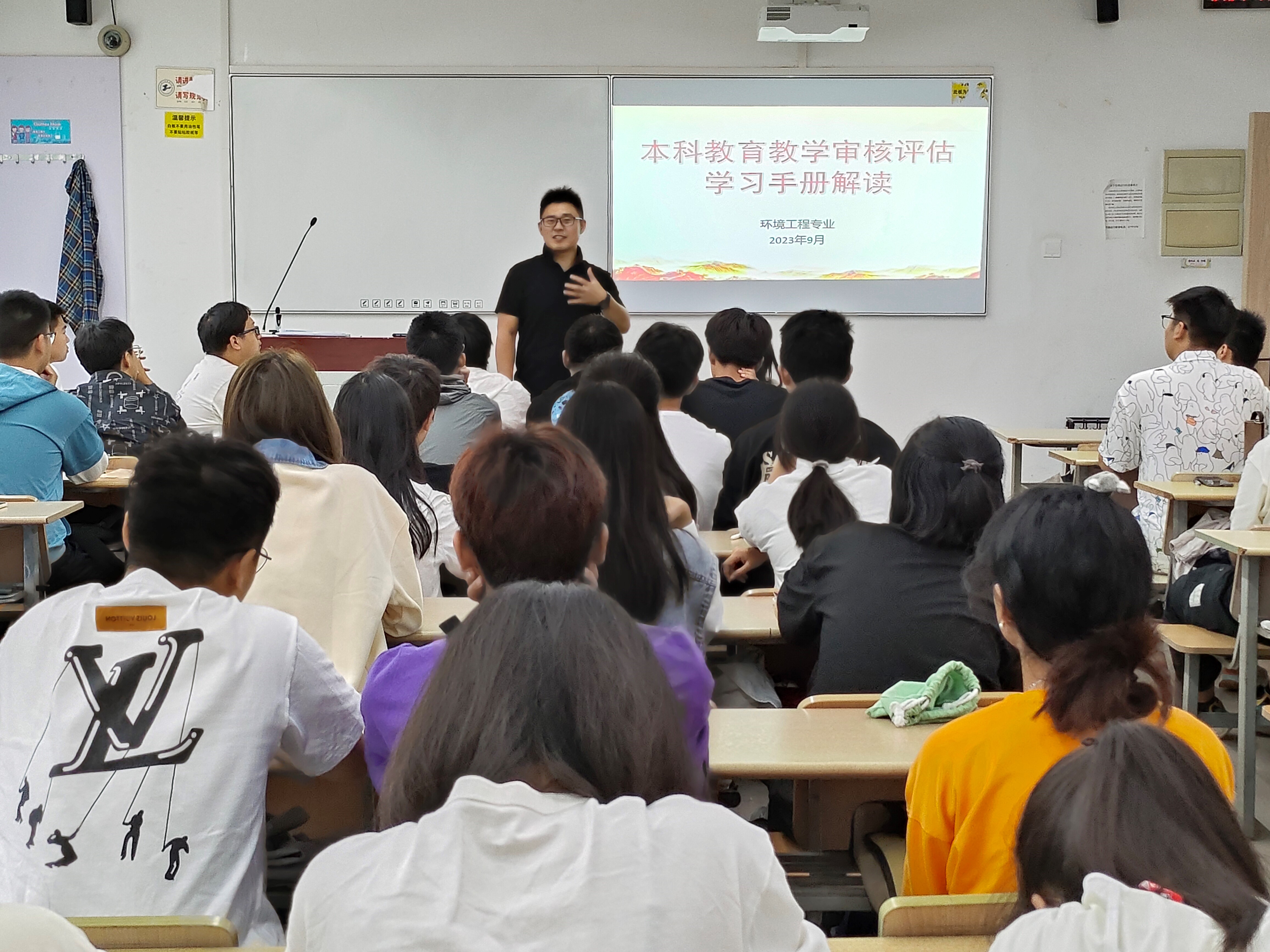 为迎接即将到来的本科教育教学审核评估,9月25日下午,化学化工学院在教学楼E316召开了本科教育教学评估学习手册解读主题班会,本科生辅导员张晓普主持。