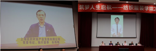校友代表、上海纺织时尚产业发展有限公司党委书记、执行董事,92届纺织工程毕业校友朱伟明精心制作题为“青春领航,奋斗致远”的视频,向同学们介绍了近代上海的纺织产业发展状况,以及东方国际目前的产业状况,所取得成就,向同学们分享了五点学习工作体会。寄语同学们成为纺织行业的追光者,追光筑梦,以奋斗做笔,以汗水为墨,在工程大谱青春之歌。此外,纺织服装学院10级服装表演专业优秀校友李帅也与同学们分享了他的精彩故事。