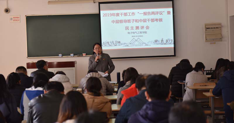 12月6日下午,电子电气工程学院在教学楼C311召开班子测评、党委委员测评暨科级干部一报告两评议会议,学院班子成员,党委委员,工会主席,系、室、中心主任(副主任),党支部书记,校党代会代表,校教代会代表,院教代会代表和学生代表参加了会议,学校巡察组成员列席会议,会议由学院党委书记段海霞主持。