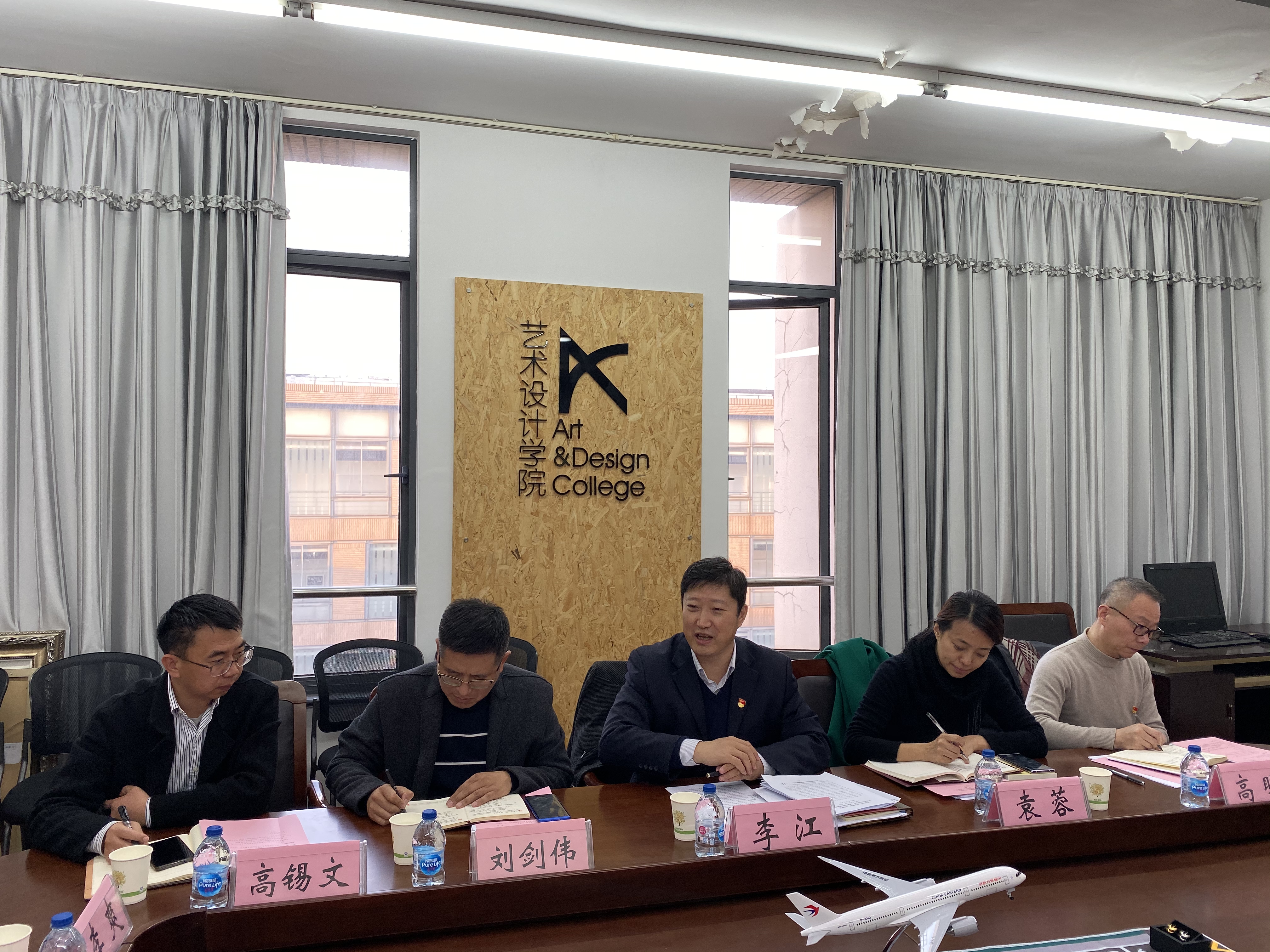 为深入学习贯彻习近平新时代中国特色社会主义思想,根据中央《关于第二批主题教育单位基层党组织召开专题组织生活会和开展民主评议党员的通知》和学校《关于召开“不忘初心、牢记使命”专题组织生活会和开展民主评议党员的通知》,12月9日,校党委书记李江赴艺术设计学院指导博士工作站党支部专题组织生活会和民主评议党员工作。党委办公室主任高锡文,艺术设计学院党委书记袁蓉,党委副书记、院长高瞩,副院长刘芹,博士工作站党支部全体党员出席了此次会议。会议由艺术设计学院博士工作站党支部书记刘剑伟主持。