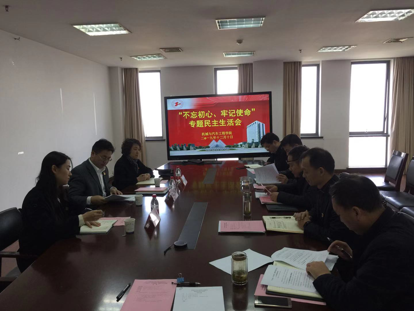 12月10日上午,机械与汽车工程学院在行政楼1208会议室召开2019年度领导班子“不忘初心、牢记使命”专题民主生活会,副校长王岩松、校督查组茅红柳、李爽,机汽学院党政领导班子出席此次会议。会议由学院党委副书记、院长张华主持。