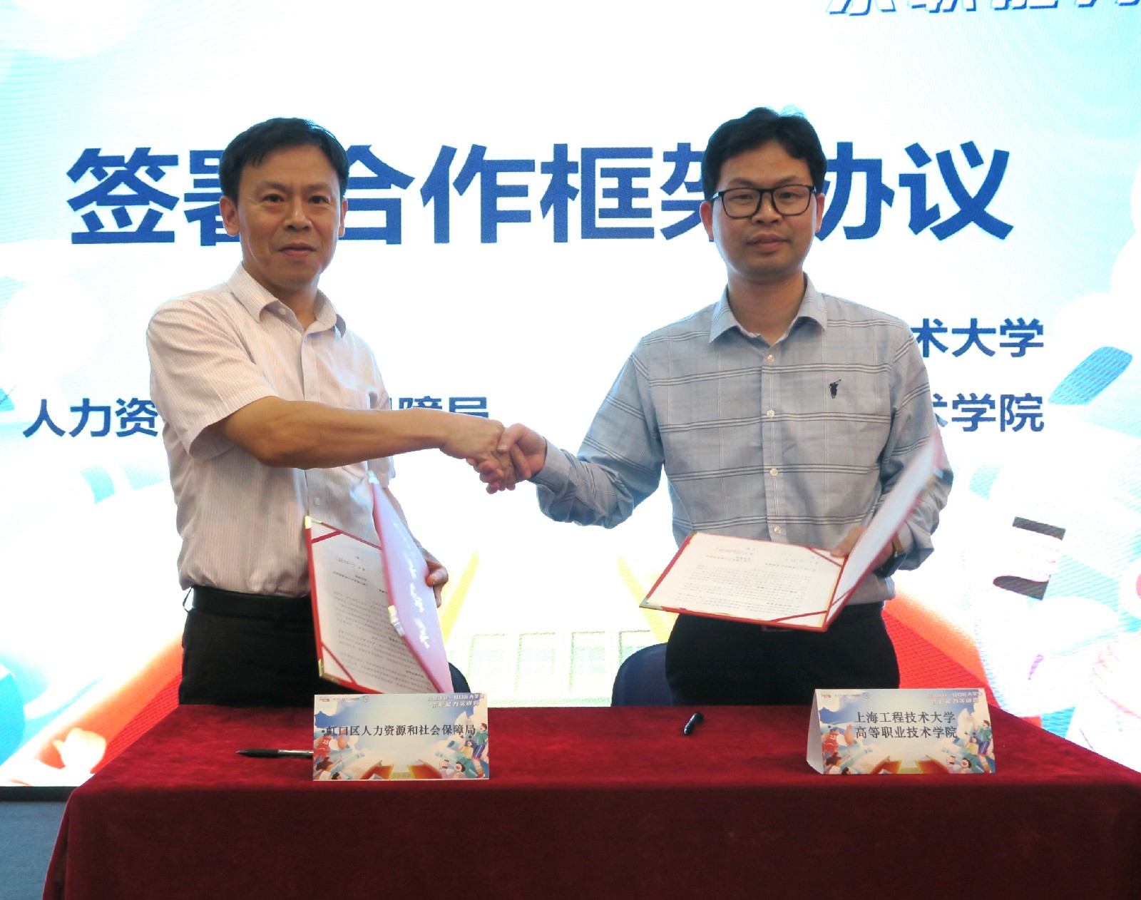 郑树彬代表学院与虹口区人力资源和社会保障局签署“就业服务合作框架协议”。