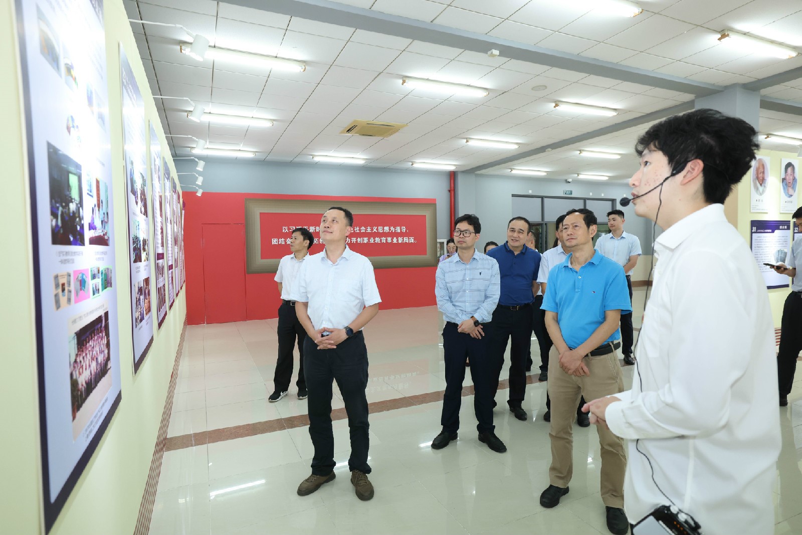 仪式结束后,院领导陪同来访人员参观校史馆,并走访慰问制造系和机电系一线技能教师和竞赛选手。