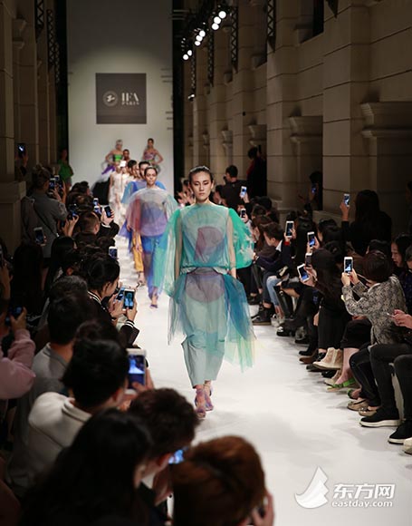 图为上海工程技术大学中法埃菲时装设计师学院学生毕业秀。