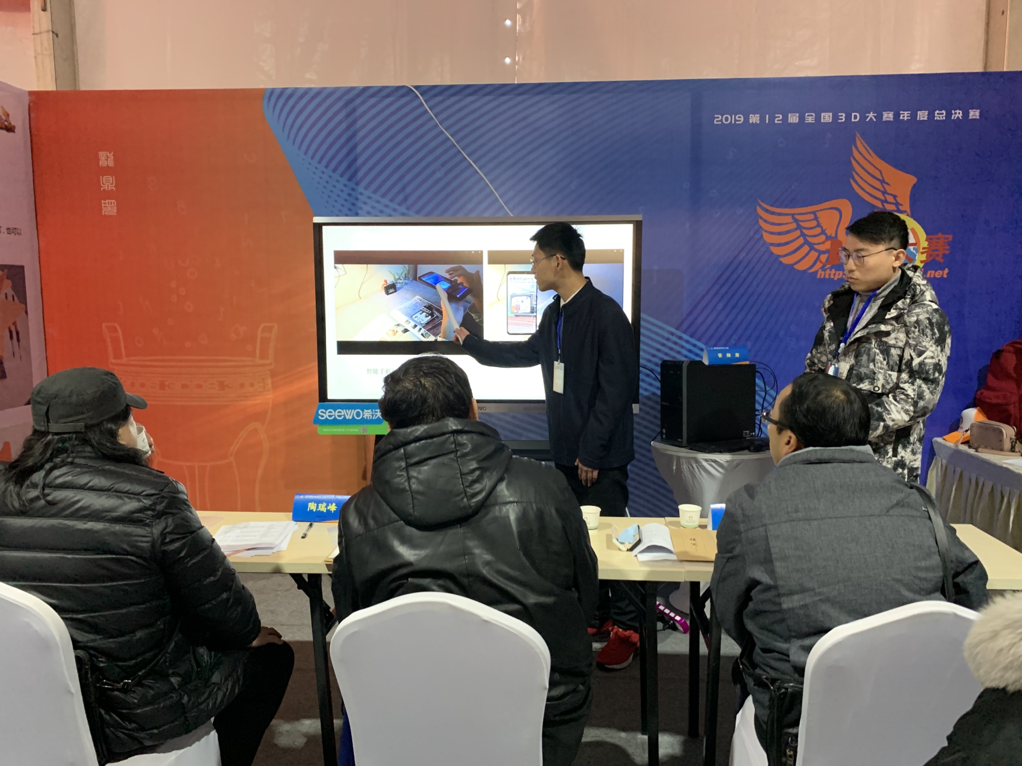 在中韩多媒体设计学院的大力支持下,徐蓉蓉和俞兰两位老师带领创作团队成员贾明豪和许王旭宇两位同学前往3D大赛总决赛现场参加答辩。《AR交互动画-设计史动画AR交互》作品从传统高校出版物的现状与机遇、增强现实技术的分析与应用、开发平台与显示平台选用、传统书籍数字化研究等各方面深入研究考证,利用最新的增强现实技术为高校出版物赋能,把纸质书和数字内容更好的整合在一起,为高校出版物的数字化提供了有益启示。