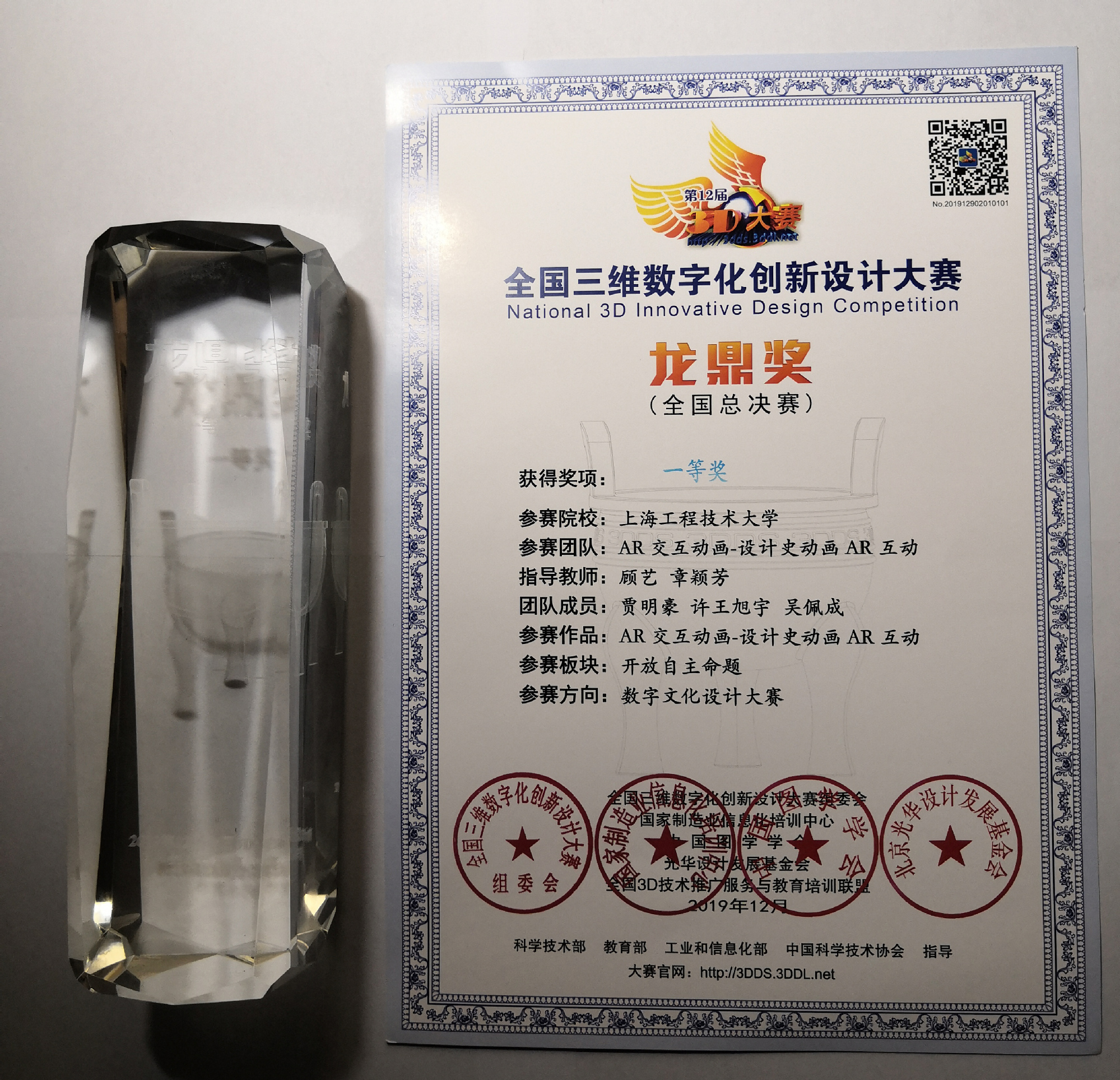 12月6日至9日,以“数字经济·创造未来”为主题的“2019数字科技文化节·玉溪暨第12届全国3D大赛年度总决赛”系列活动在云南玉溪举行,经过激烈角逐,由我校中韩多媒体设计学院顾艺老师、章颖芳老师指导,贾明豪、许王旭宇、吴佩成同学制作的增强现实作品《AR交互动画-设计史动画AR交互》荣获数字文化设计方向全国总决赛一等奖;由我校材料工程学院刘淑梅、何建丽老师指导,王博、燕昶宇、任生浩同学制作的《家庭护士小萌》作品荣获数字工业设计方向全国总决赛三等奖。