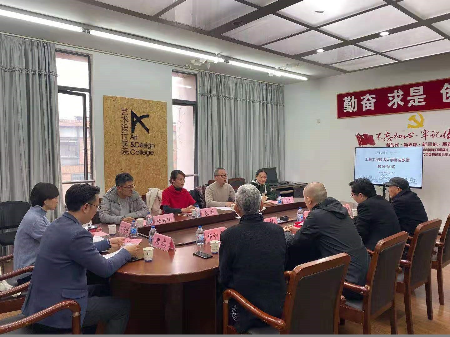 12月19日,艺术设计学院客座教授聘任仪式在艺术楼A510举行。浙江舜江建设集团有限公司董事长李标、上海莲影影视制作有限公司艺术总监张祎受聘为学院客座教授。艺术设计学院党委书记袁蓉、院长高瞩、艺术设计学院兼职教授祁和亮等出席聘任仪式。
