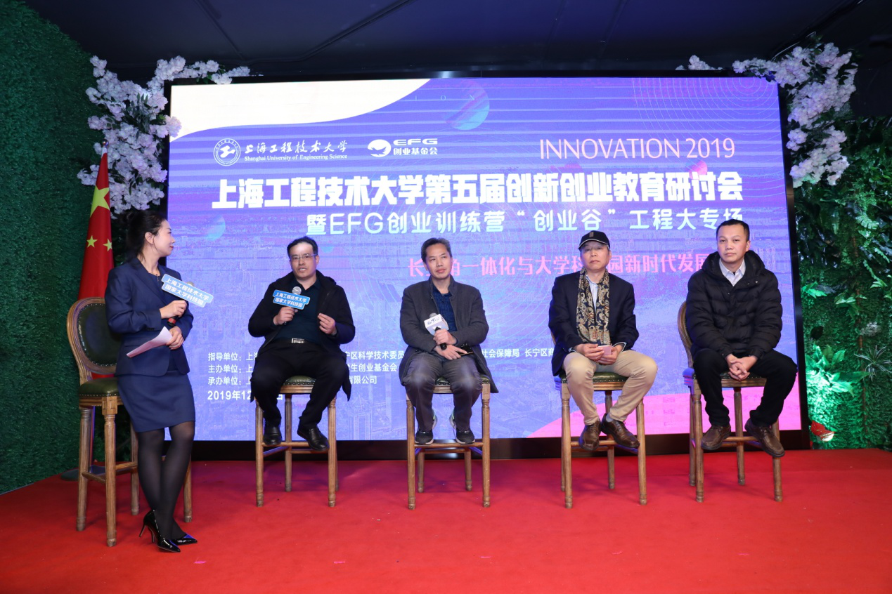 12月20日下午,上海工程技术大学和上海市大学生科技创业基金会(EFG)在长宁校区联合主办了以“长三角一体化与大学科技园新时代发展机遇”为主题的“第五届创新创业教育研讨会暨EFG创业训练营(工程大专场)”。
