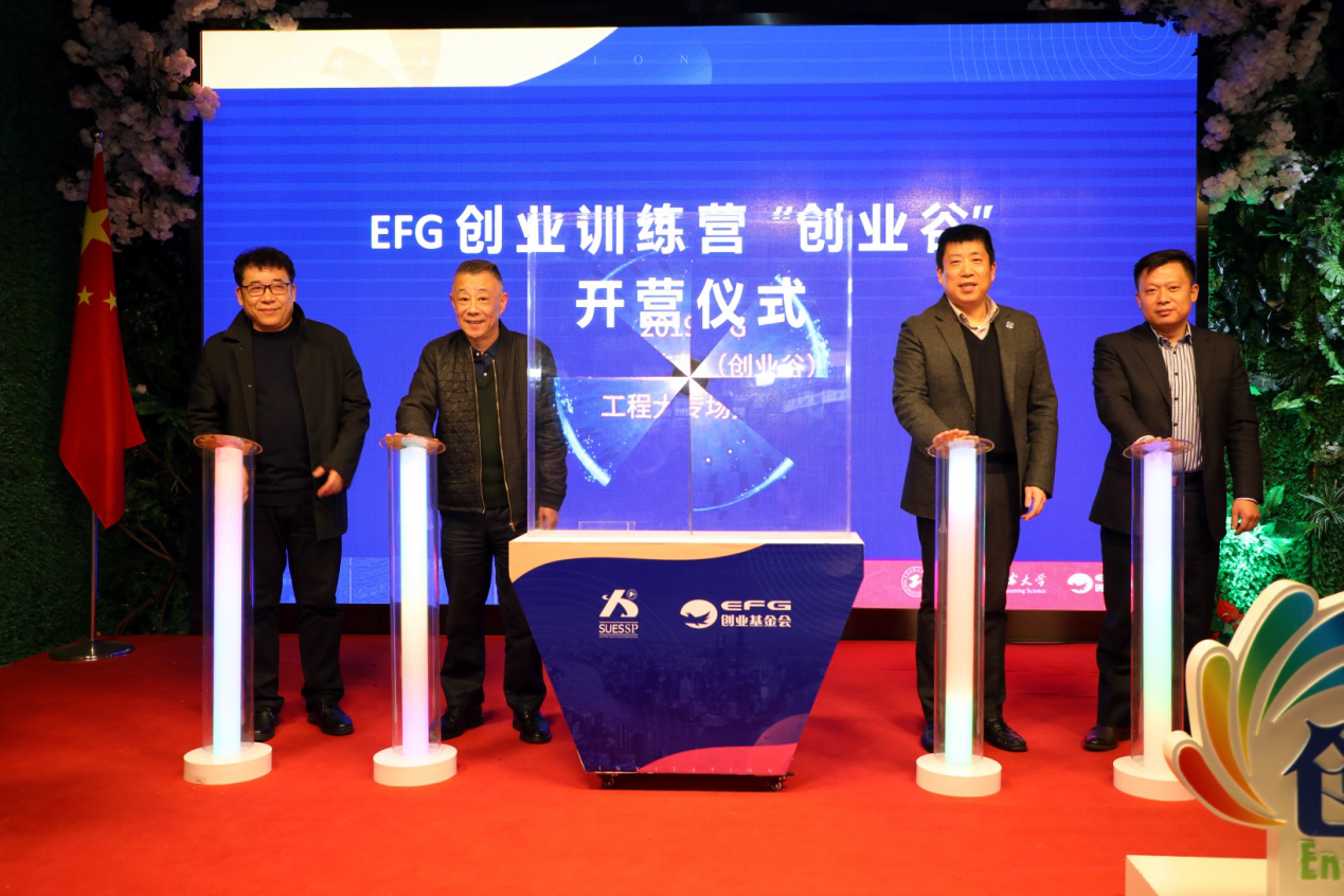 在与会嘉宾和学员的共同见证下,倪奕松秘书长、刘光顺副主任、曾国辉主任、王天行主任共同为创业教育研讨会暨EFG创业训练营“创业谷”开营。