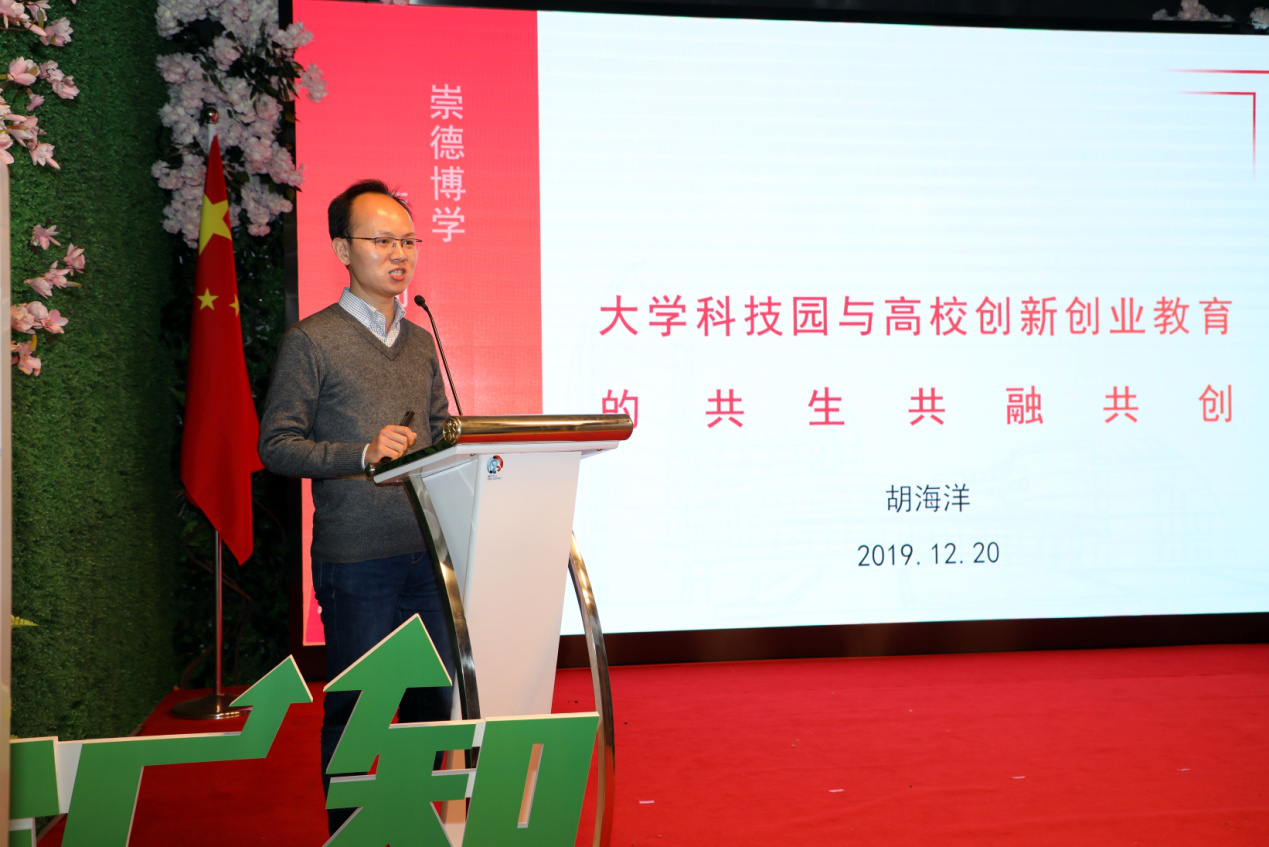 上海工程技术大学创新创业教育课程导师胡海洋副教授、工程大科技园滁州园区常务副总经理汪明分别围绕《大学科技园与高校创新创业教育的共生共荣共创》和《大学科技园在长三角区域经济的协同作用》作了主题演讲。