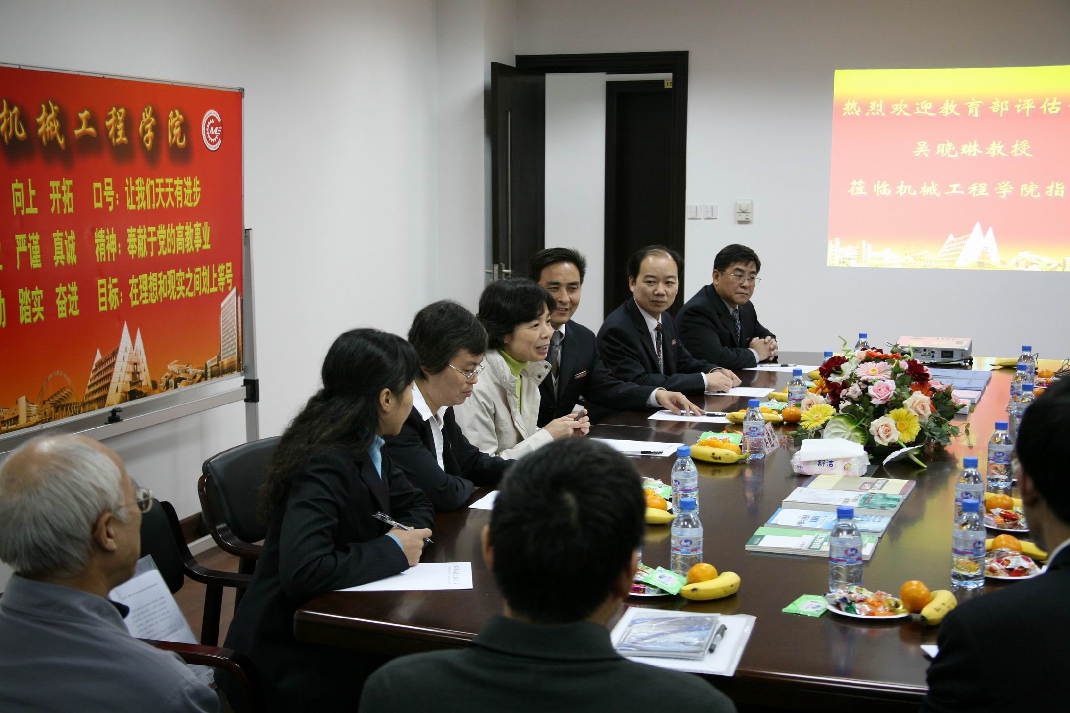 |  11月21日下午16:45,评估专家吴晓琳教授考察机械工程学院并召开了座谈会,机械工程学院党政领导班子、学院中层干部、教授、学科带头人、中青年教师代表共16人参加了会议。 程武山院长首先向专家汇报了学院如何以学科建设为核心,围绕“上海优先发展先进制造业行动方案”协调“机械设计制造及其自动化”和“能源科学与工程”两大学科,促进专业改造和重点学科建设,提升学院的教育质量;如何紧密依托合作办学、产学合作培养人才的途径,积极吸纳社会各界品牌资源和先进装备,联合共建了产学紧密合作的“中国上海工程技术大学—博世力士乐·博世集团(德国)现代装备及其控制技术联合实验中心”等产学合作的项目,如何围绕评估指标开展工作作了全面的介绍。 评估专家吴晓琳教授认为学院的专业设置与市场需求紧密结合,特别是在教学方面的投入很有特色,对学院在各方面创造条件,不断提高本科教学质量,培养学生创新能力等做法给予了肯定,并详细询问了与德国博世集团博世力士乐公司合作的具体实施情况,包括场地、设备和人员配置等,吴晓琳教授认为德国博世集团博世力士乐联合实验中心对于师资的培训和学生的实验实践能力的提高提供了有利的条件,有利于强化中青年教师的科研能力,尤其对于学生的实践创新能力的提高大有裨益。吴晓琳教授还详细了解了学生参加数控技能大赛获奖、学生参加教师科研、学生社团等情况,并重点关注学院的上海市重点学科——能源科学与工程学科的建设情况,肯定了学校对学科建设的极大支持。