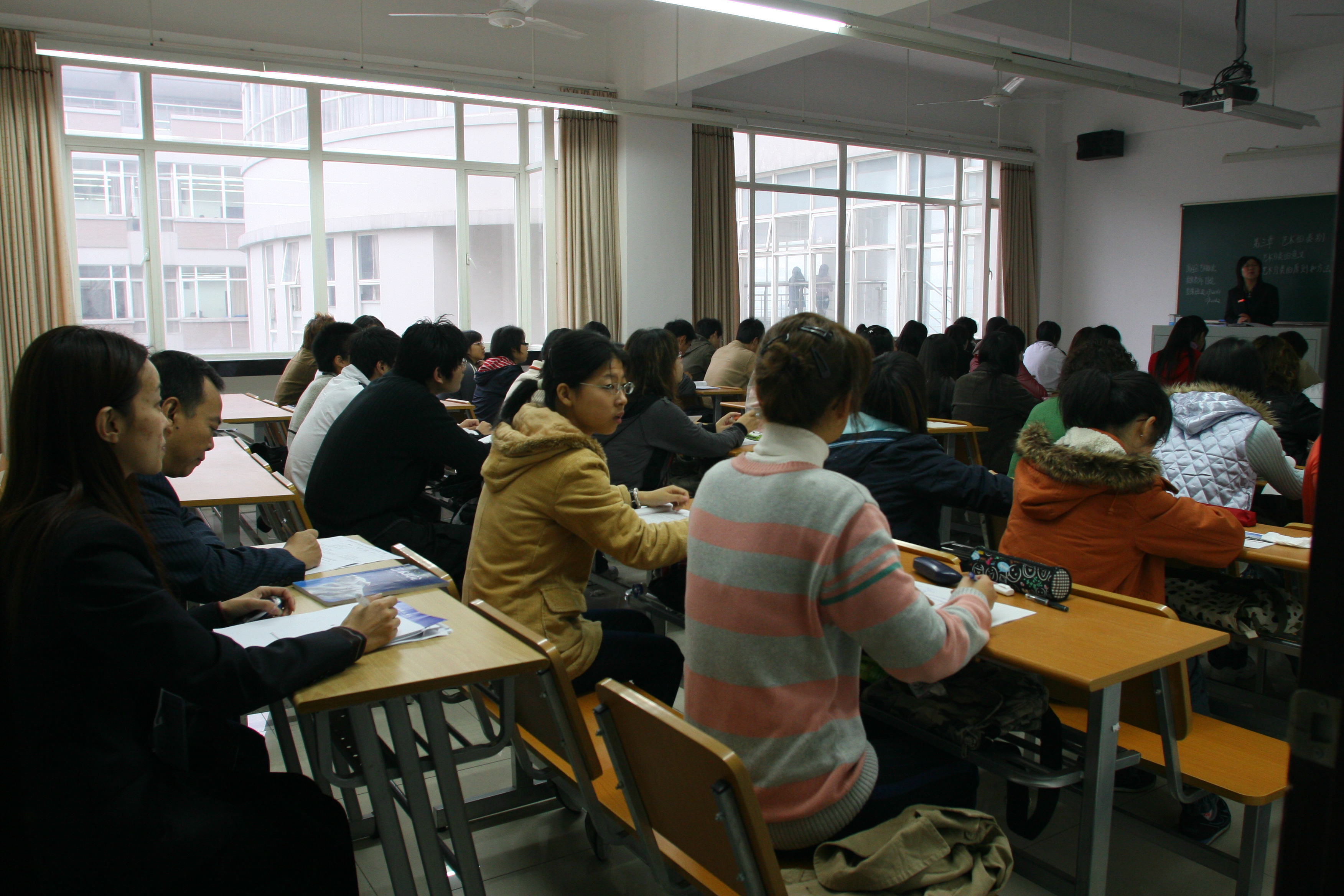 2006年11月21日上午第一节课,评估专家组组长肖瑞峰教授在教学楼C302教室考察了艺术设计学院陈岚老师为艺术设计专业0712061、0712062班同学讲授的《艺术概论》课程。