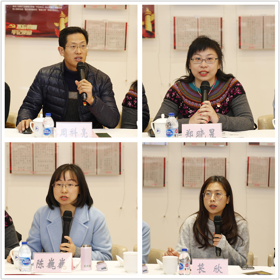 会上,电子电气工程学院党委组织员周科亮、化学化工学院党委组织员郑晓昱、航空运输学院党总支组织员陈巍巍和纺织服装学院党委组织员苌欣,分别围绕不同的侧重点,交流了2019年度的工作实绩、工作体会和工作感悟。
