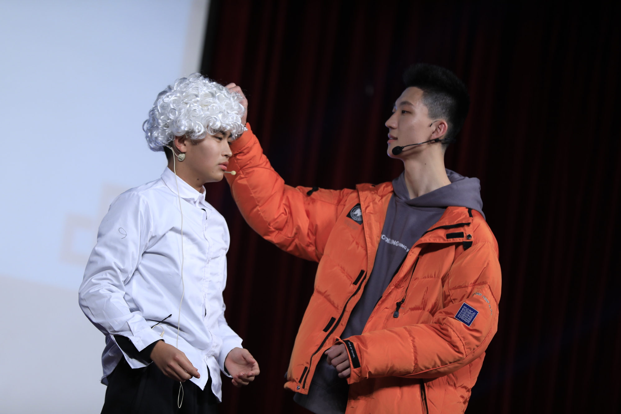 为了给祖国70周年的献礼,2019级新生给同学们带来了情景短剧《辉煌走过70年》,以男主角在博物馆的奇妙经历为大家展现了开国大典、雷锋精神、原子弹爆炸、港澳回归、08年北京奥运会、22年冬奥会等令国人无比激动自豪的时刻,同时演员们幽默风趣的台词也赢得了阵阵笑声。