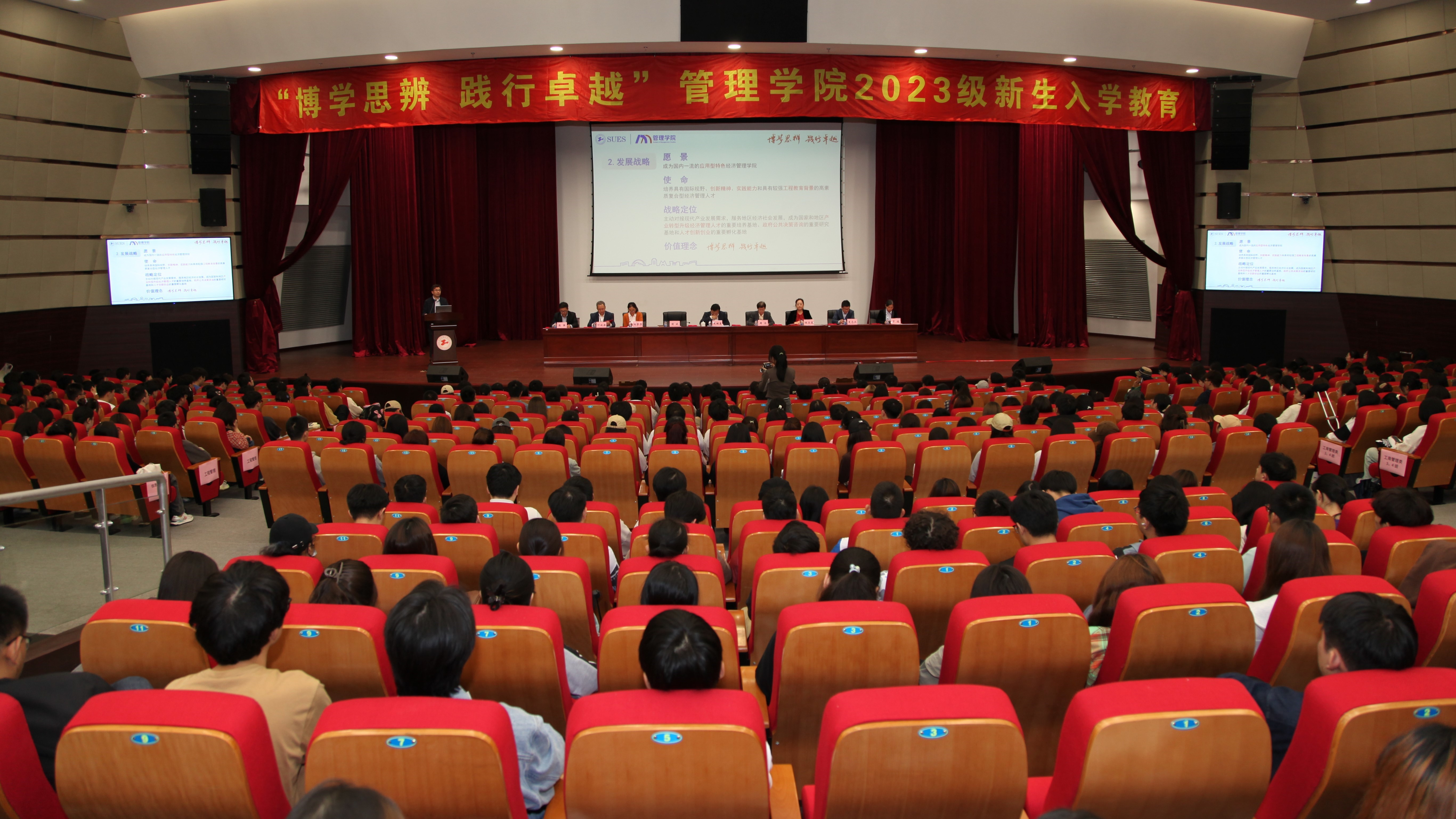 为帮助学院新生尽快了解学院、适应大学生活,管理学院于10月13日在志宏堂召开2023级新生入学教育。校党委副书记史健勇,管理学院党委书记周洁、院长胡斌、党委副书记程玉莲、副院长邱梦华、夏志杰、叶欣梁、罗娟,系主任、全体2023级新生班主任以及学院2023级辅导员和全体本科新生出席活动,入学教育由党委副书记张强主持。