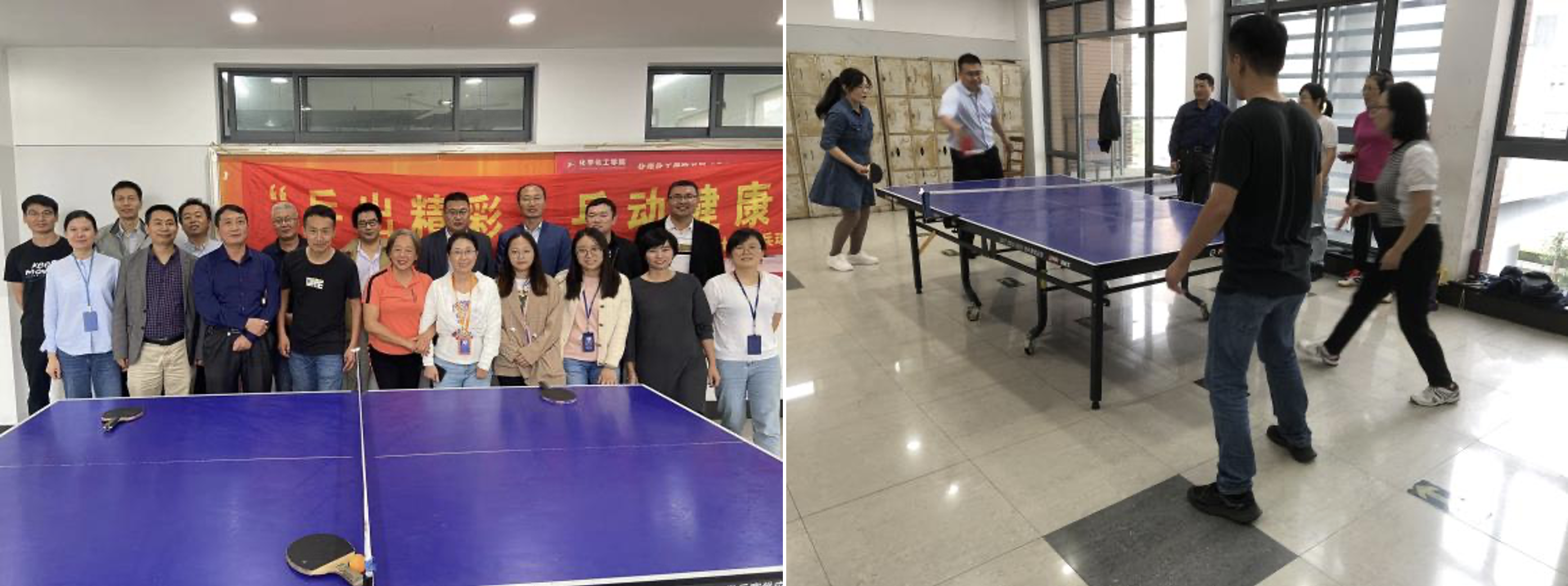 近日,化学化工学院工会在实训中心3号楼举办了“乒出精彩,乓动健康”2023年化学化工学院第十届教工乒乓球比赛。学院党委书记宋勤健,院长王金果,副院长陆杰,院工会副主席张敏及二十余名老师参加了开幕式及接下来的比赛。