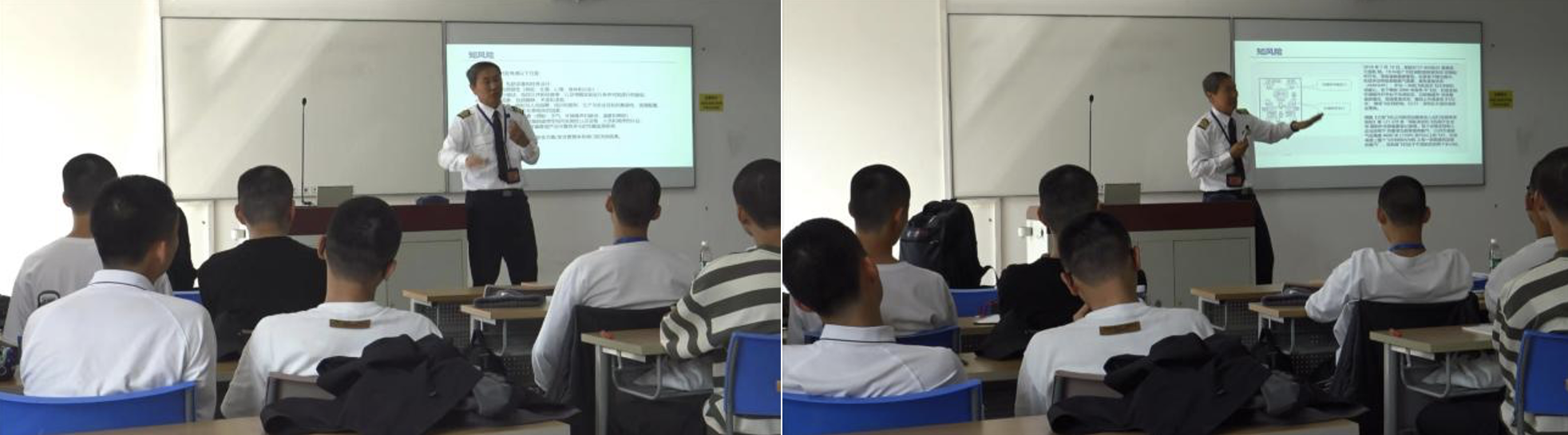 闫机长结合实际飞行安全案例及自身从业经历,从知敬畏、知风险、知自身、求卓越四个模块,重点围绕飞行安全警示教育、飞行员作风素养要求展开讲授。