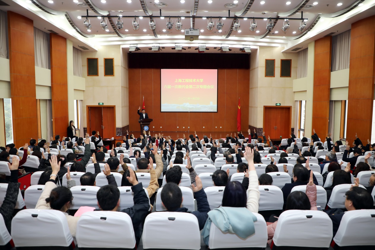 会上,全体教代会正式代表表决通过了《上海工程技术大学关于缴存补充公积金的方案》、《上海工程技术大学绩效工资实施方案》和《上海工程技术大学关于学院岗位业绩津贴经费切块核拨办法》以及大会决议。