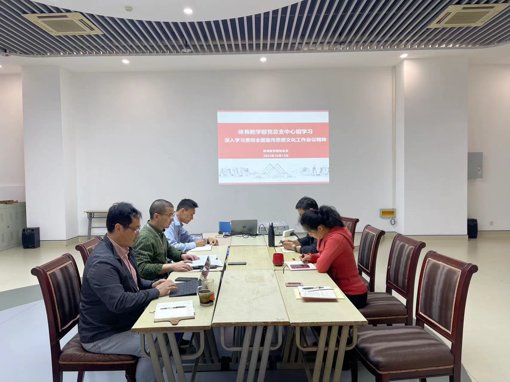 10月13日上午,体育教学部党总支开展中心组学习会,专题学习全国宣传思想文化工作会议精神。中心组成员参加学习,工程训练中心宣传委员、副主任万军列席旁听,会议由党总支书记李扬主持。
