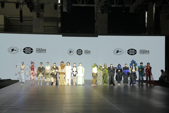 本场时装秀以“无边际”为设计主题,同学们通过对时空极限的想象诠释——现实与虚拟交融、自然与科技和谐共生,展示对世界变革理念的理解。在此次时装秀中,我们惊喜地看到同学们丰富的多样性灵感来源和多元的思考维度:对虚拟世界的探索和憧憬、对自然生活的体验和感悟、对民俗民艺的创新以及对潮流时尚的理解。踏着流动的旋律,让人真切地感受到纺织服装学院的同学们对新型材质的探索:反射材质与传统纹样的结合;手工打籽绣、堆堆绣与雪纺材质的混搭;欧根纱与色丁材质构筑的梦幻组合;长毛绒、丝绒与色块对比建构的童趣;以及取自自然的藓类植物与提花的融合。从设计理念、设计发展与综合材质应用,无不体现出大家的创新创意,也体现出他们对未来世界的探究思考。