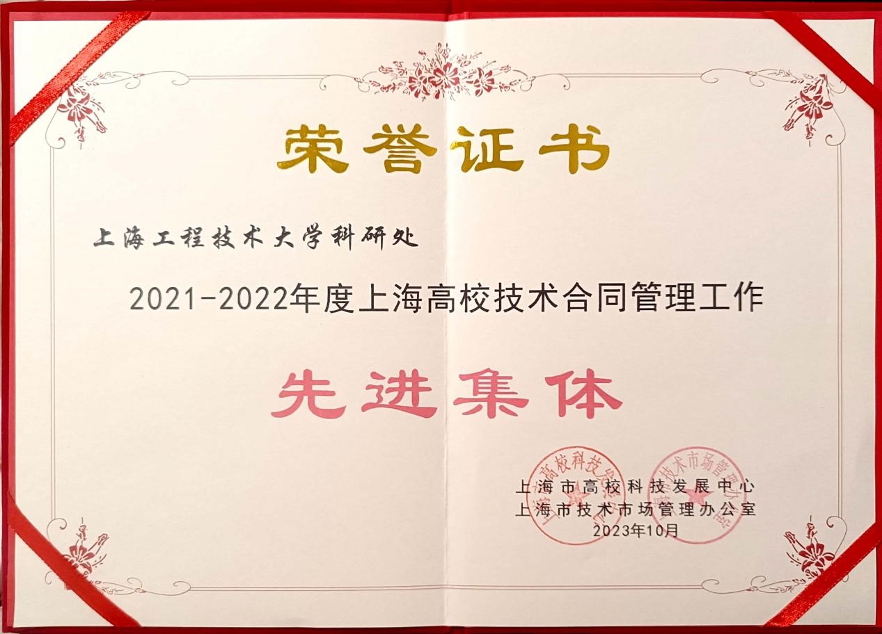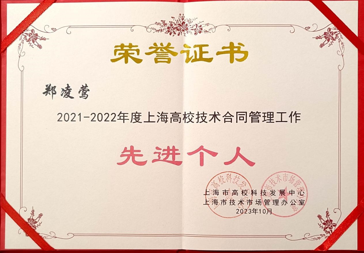 10月25日,上海市高校科技发展中心与上海市技术市场管理办公室联合召开了2021—2022年度上海高校技术合同管理工作先进表彰会。我校科研处荣获“上海高校技术合同管理工作先进集体”,郑凌莺老师被评为“上海高校技术合同管理工作先进个人”。此次,经各高校推荐申报及专家评审,共评选出上海高校技术合同管理工作“先进集体”7家、“先进个人”20名。