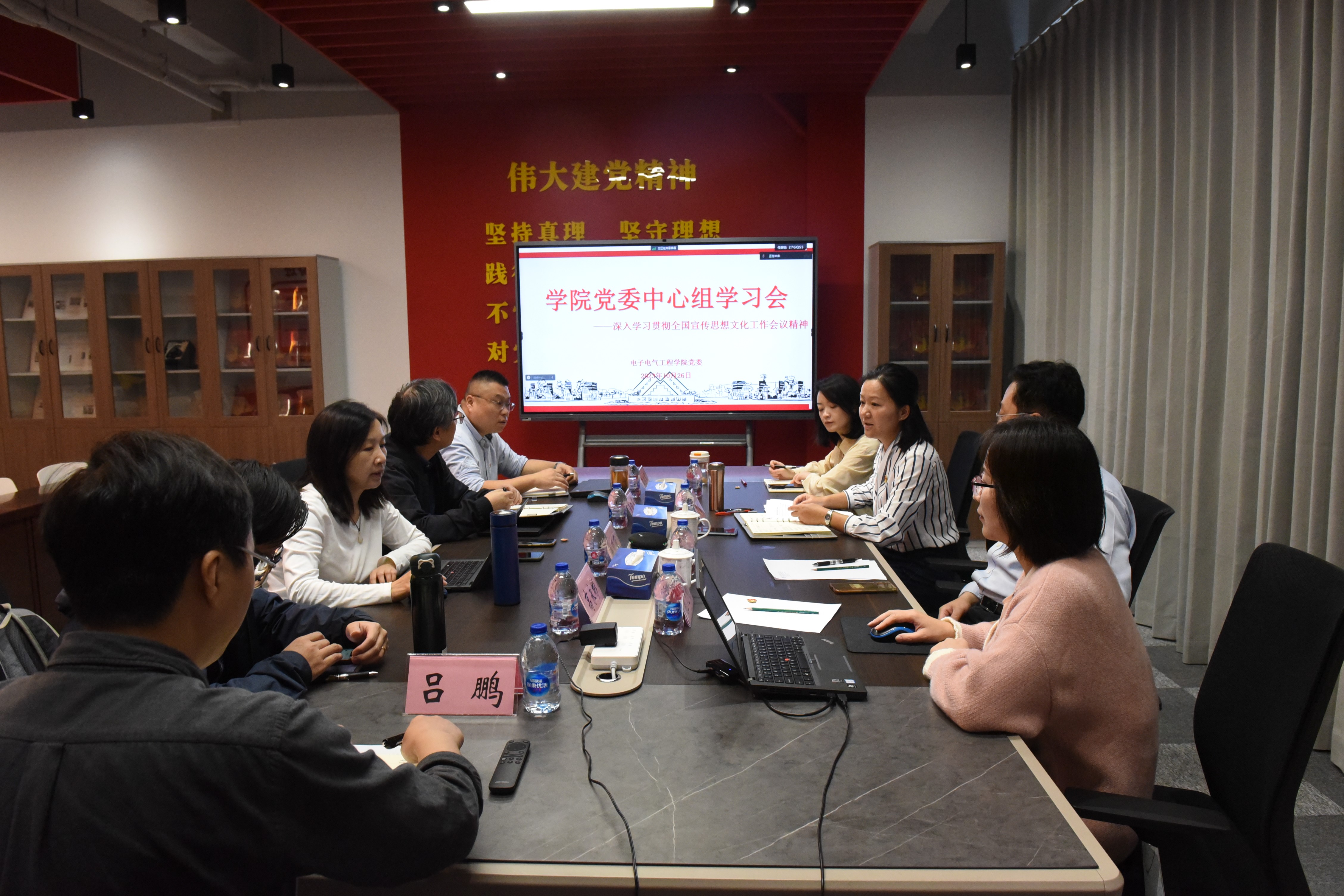 10月26日,电子电气工程学院党委在现代交通工程中心7-1003党群E家召开党委理论学习中心组专题学习会,深入学习全国宣传思想文化工作会议精神。特邀马克思主义学院孔凡娟老师以“习近平文化思想理论宣讲”为题作专题报告。电气学院党委委员、党政班子参加学习,机械与汽车工程学院党委宣传委员、副院长王大中巡听旁听。会议由学院党委书记范君晖主持。