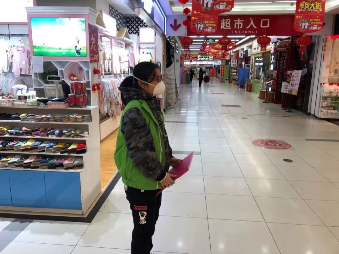 ▲ 郑伊宁在公共场所引导人流去体温检测点