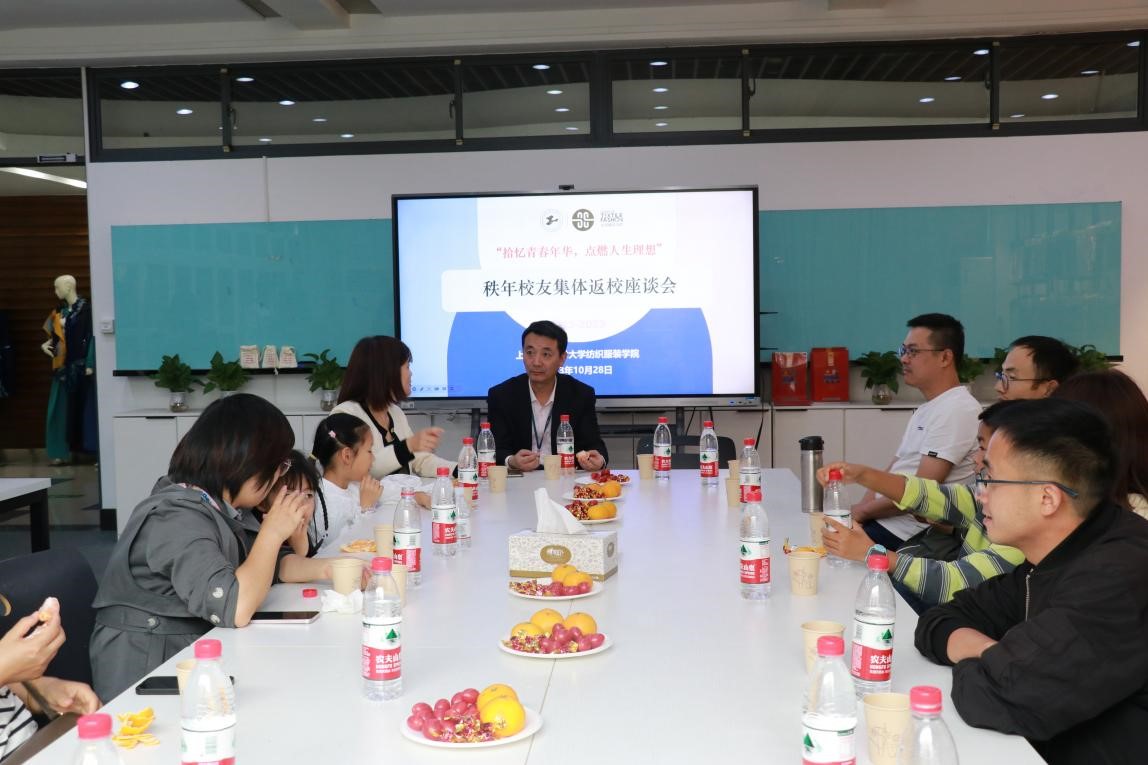 10月28日,上海工程技术大学迎来建校45周年,纺织服装学院在艺术楼C210特别举办“拾忆青春年华,点燃人生理想”秩年校友集体返校座谈会,这次座谈会汇聚了2013届的20余位毕业生,他们带着一家人一同重聚校园,洽谈过往,共同回味往昔的青春岁月。