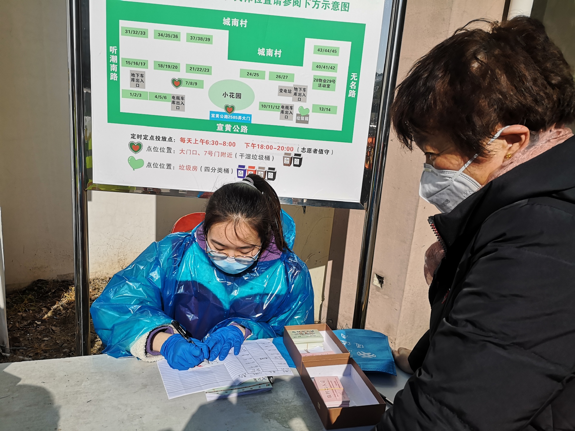 姚诗怡每天的工作是协助做好小区人员登记、测体温、防疫物资整理、车辆排查、消毒工作,此外,还参与了社区防疫宣传工作,张贴宣传通知、普及防疫知识等。工作刚开始的时候,居民们由于卫生防疫意识比较差,对疫情防控方面的知识了解较少,对防疫工作或多或少有不理解、不配合,姚诗怡坦诚也曾感到委屈、无奈,却依然坚定执着。为了让居民重视疫情防控和参与支持防控工作,姚诗怡和居委会工作人员一起走家串户,用“专业人士”的身份给返沪人员讲事实摆道理,耐心坚持一遍又一遍地入户讲解。渐渐地,返沪人员开始被姚诗怡同学的担当负责感动,主动配合测量体温,做好居家隔离。