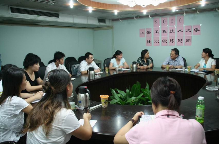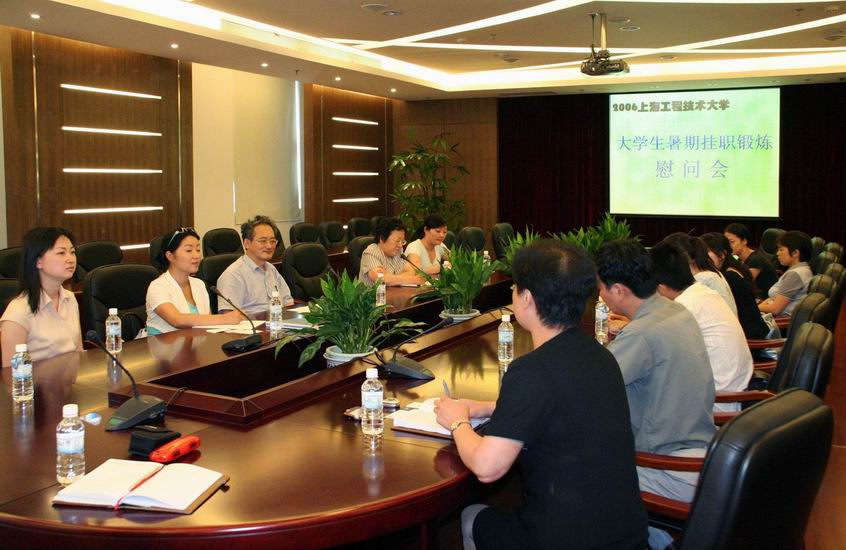 | 8月3日,上海工程技术大学校领导和团委负责人慰问了在长宁、黄浦、卢湾、普陀、虹口等区暑期挂职锻炼的工程大学子。 上午,校党委书记曹伟武、团委书记王一川及组织部部长助理王勤等一行赴长宁区区委慰问暑期在那里挂职锻炼的工程大学生。学校慰问团向带教老师了解了同学们一个多月的表现情况,并对带教老师表示问候和感谢。在随后的座谈会上,同学们踊跃地向校、区领导汇报自己在挂职期间的心得和收获,纷纷表示挂职锻炼对他们认识和融入社会、增长才干有很大的好处。 长宁区区委副书记高度评价了工程大学生在长宁挂职期间的表现,并对工程大学生全面提高综合素质、投身长宁建设寄予厚望。他鼓励同学们利用挂职的机会提高专业技能,培养严谨的工作作风,在社会实践中锻炼自我,努力成为优秀人才。