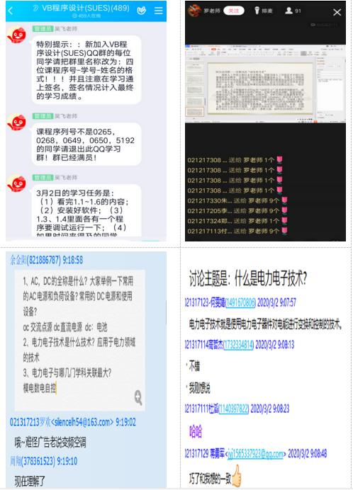 学院首日共计开课46门次,教师上线33人,学生上线2572人次。所有开课教师准时到岗,师生积极互动交流,没有因网络拥堵影响教学,课程形式主要有腾讯课堂直播+在线讨论和超星泛雅录播+在线讨论两种。线上教学平稳运行,充分体现了电院人的担当精神,创新意识和应变能力。