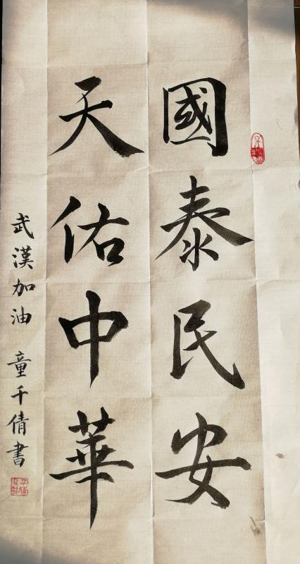 在此,创作书画作品一幅,为一线的你们加油,为武汉加油,愿你们平安归来;也愿国泰民安,天佑中华!相信冬去春来时,我们会脱下口罩,共赏樱花!相信灾难退去时,中华民族会更加强大,“千磨万击还坚劲,任尔东西南北风”!