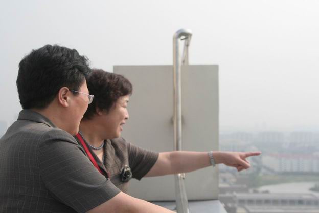 9月21日下午14:30分,市教委评建工作专家组成员季建华教授来到我校,在与组长孙莱祥教授见面后,在校长汪泓的陪同下到行政楼顶楼俯瞰我校全貌。