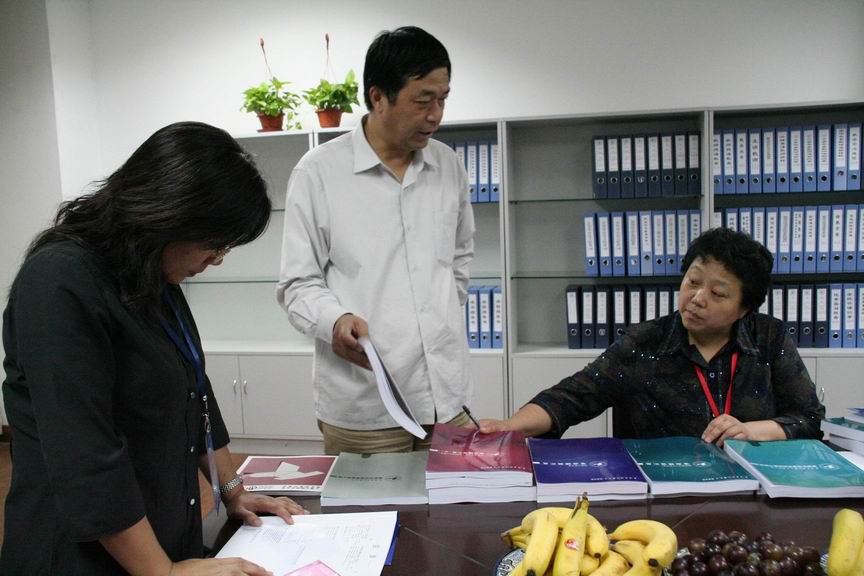 9月21日晚上9:00,评建工作专家组成员徐亚非教授在我校艺术楼检查服装学院的评估材料。