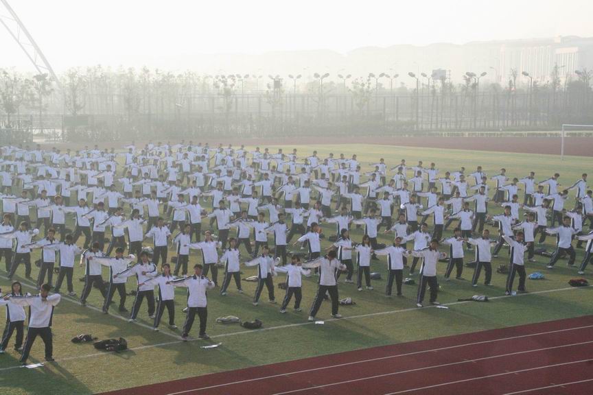 9月22日早6:40评建工作专家组成员徐亚非教授来到我校大操场,察看学生晨练情况。