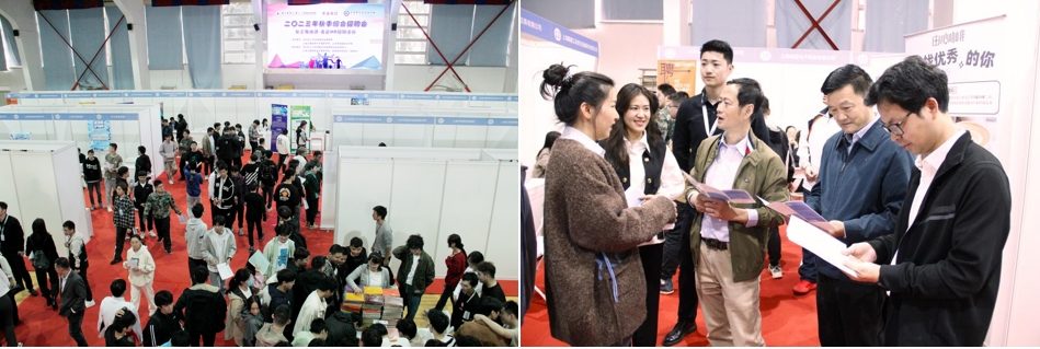 在招聘会现场,毕业生们热情高涨,在心仪的企业展位前驻足咨询,主动了解用人单位的岗位要求和具体信息。展位上,企业HR人员精问细听,毕业生们深思酌言,双方在交谈中达成共识,初步确定就业意愿。