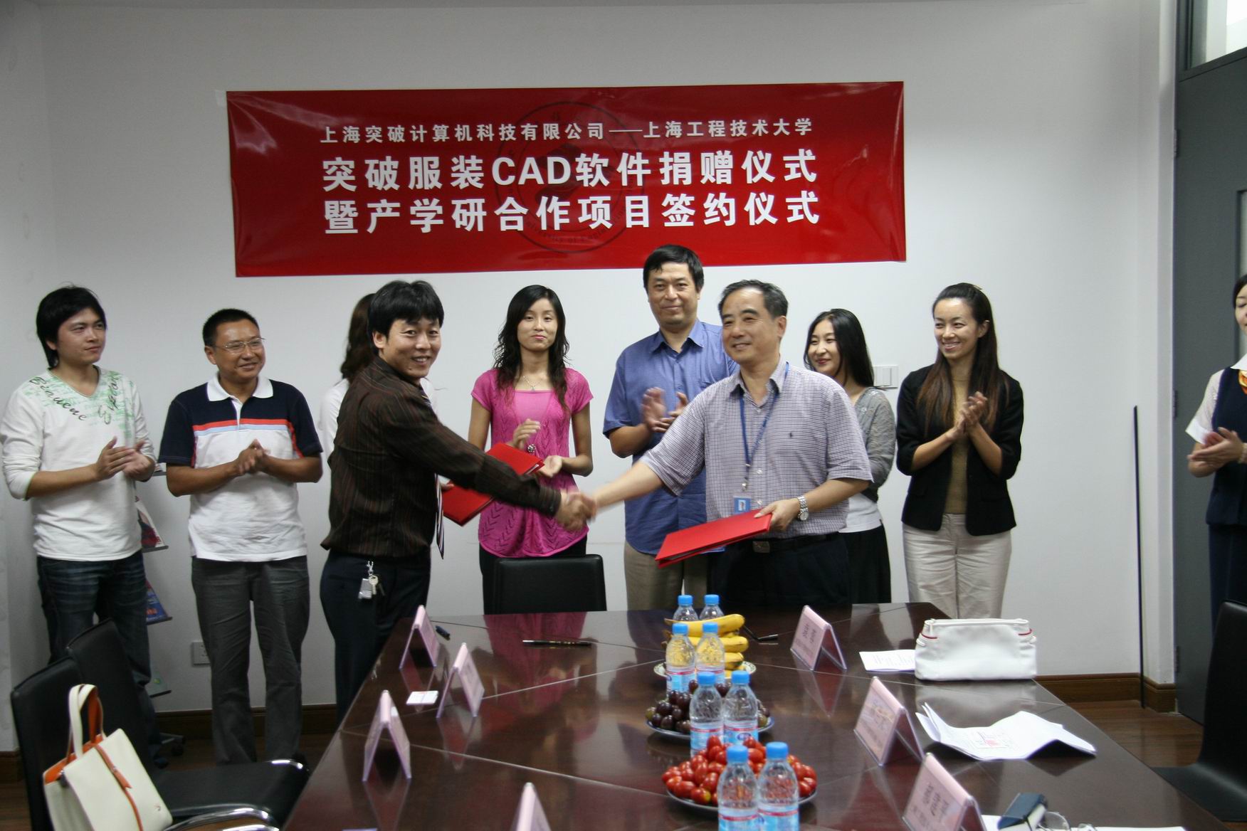 9月28日,上海突破计算机科技公司在松江校区艺术楼服装学院会议室向我校捐赠了其公司的最新学习版服装CAD软件,并和我校签署了建立校外实习基地的合作协议。