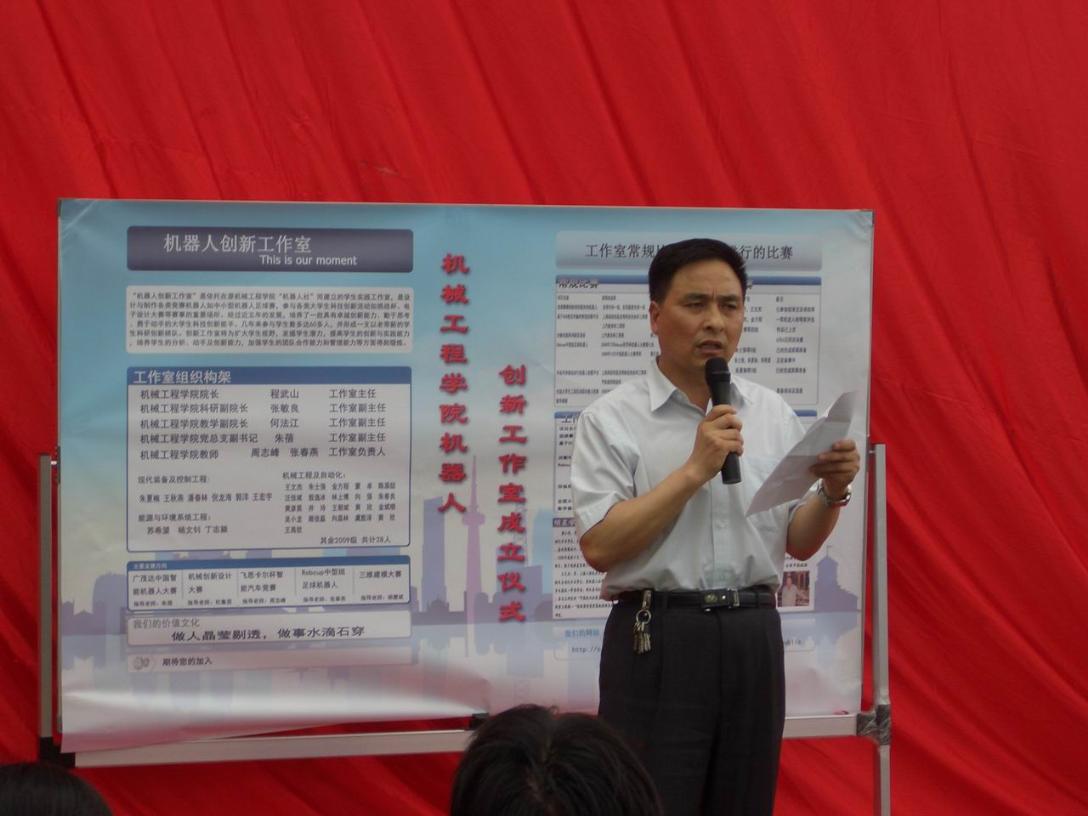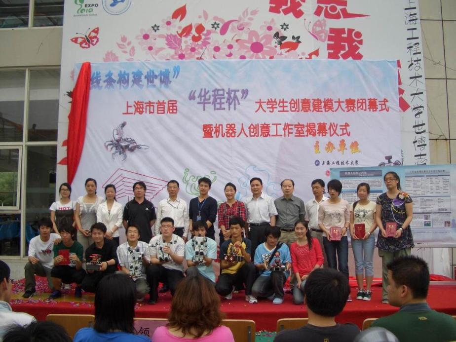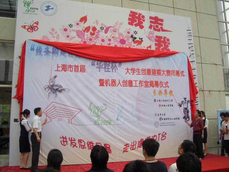 6月17日中午12:00,我校在大食堂门口举办了“线条构建世博”首届“华程杯”大学生创意三维建模大赛闭幕式暨机械工程学院机器人创新工作室成立仪式,校党委宣传部部长王一川,机械工程学院院长程武山,学院党总支书记姚黎明,校团委副书记茅华伟,机械工程学院副院长何法江、张敏良,党总支副书记朱蓓等参加了此次活动。
