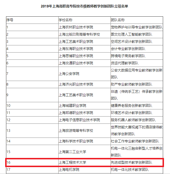 近日,2019年度上海高职高专院校市级精品在线开放课程和教师教学创新团队评审结果公布,经专家评审及市教委审核,制造工程系《工业产品设计与快速原型》课程和先进成型技术教学创新团队分别获批上海高职高专院校市级精品在线开放课程和教师教学创新团队立项。