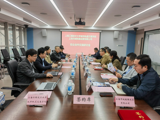 11月10日下午,城市轨道交通学院党委书记万慧琳,院长刘志钢,党委副书记盛知恒,副院长栾东庆、胡定玉,院长助理黄远春一行赴上海市域铁路运营有限公司推进校企产学研战略合作交流。上海市域铁路运营有限公司党委书记、执行董事徐敢锋等同志热情接待了学院一行,双方共同召开校企合作交流研讨会。会议由徐敢锋书记主持。