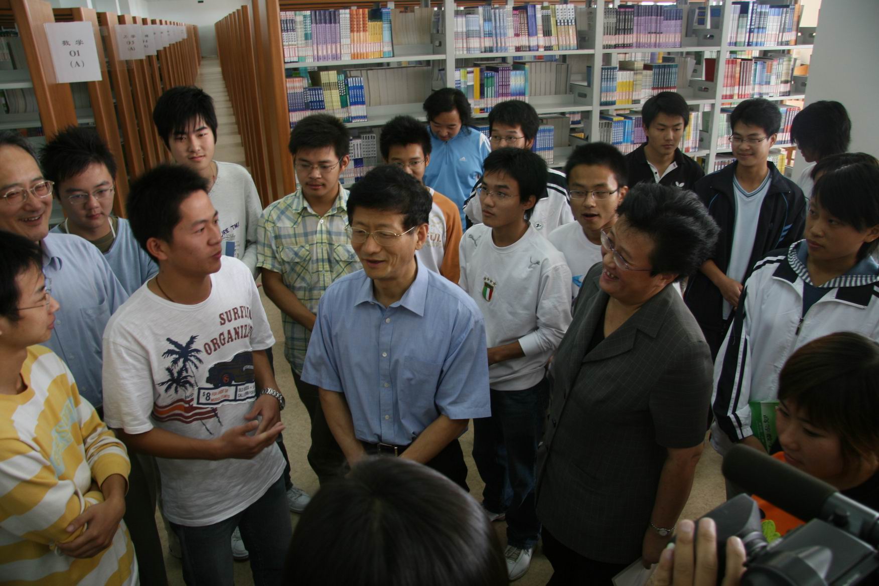 在图文信息中心学生阅览室,孟建柱书记与校领导亲切接见了在我校就读的江西籍学生,关切地询问了他们在上海的近况,与他们交流了在我校的学习、生活、思想动态等情况。   (丁卓菁)