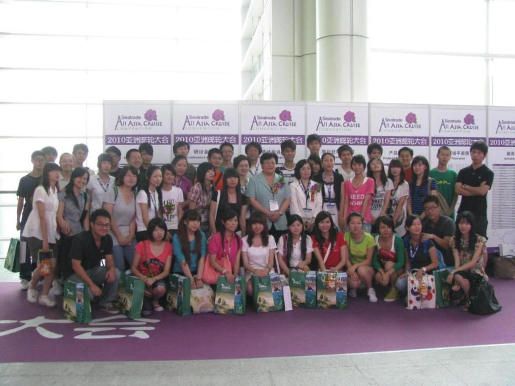 |  6月24日,“2010 SEATRADE亚洲邮轮大会”在苏州国际博览中心开幕。本次大会由上海虹口区人民政府、上港集团主办,我校汪泓校长、党委褚劲凤副书记、学生处王明复处长、校办史健勇主任及管理学院旅游专业的教师应邀参加了本次大会。管理学院07级08级游轮经济专业的50名学生在学院党总支副书记虞蓉和辅导员牛兵的带领下也来到了大会的现场。 本次大会上,来自世界各地的邮轮公司、港口、旅游目的地、旅游局、邮轮产品代理旅行社和邮轮供应商带来了最新的邮轮产品和技术。许多首次在苏州展出的邮轮旅游高端产品,吸引了同学们的目光。学生们先后来到歌诗达、皇家加勒比、丽星和公主等邮轮公司展台前认真听取了工作人员的讲解并和工作人员进行了积极的讨论和交流,部分同学还进行了记录。 会议期间,汪泓校长、校党委褚劲风副书记、校长办公室史健勇主任等亲切慰问了参加大会的全体学生。汪校长在和学生谈话中指出邮轮产业是个新兴的产业,邮轮在中国的市场前景光明。此次大会为同学们提供了一条近距离接触整个邮轮产业的途径,希望大家在接下来的学习中努力学好专业知识,培养自己国际化的眼光,为能够成为自信、优秀的邮轮人打下坚实的基础。 整个参观过程中,同学们都显得比较活跃和兴奋,激动之情溢于言表。08级游轮经济专业陈昊哲同学在接受媒体采访时说到:“作为一名邮轮专业的学生来说,此次亚洲邮轮大会开阔了自己的眼界,也帮助自己更直观地了解邮轮产业现状和前沿,相信对今后的发展会有很大的帮助。”