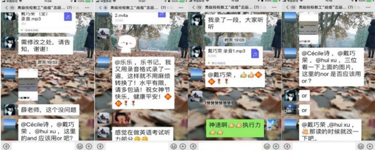 3月7日,基础教学部四名老师接到翻译任务就立即行动起来,第一时间与江湾街道党群中心乐书记交流了解志愿者相关要求和内容,以主人翁的态度投入到本次志愿服务中去。在了解街道疫情防控工作需求后,大家群策群力,以最优化的方式开展志愿服务工作。老师们受近期网课的启发,活用活现,建议用录音的方式把需要解释的内容制作好,到时各小区可以直接播放,以解决翻译之需,此建议得到了江湾镇街道社区党群服务中心乐书记的赞扬和肯定。老师们在得到了相关双语材料后,第一时间认真学习文件,完善个别单词后开始了录音工作,老师们对自己严格要求,精益求精,分享试录音效果,相互学习鉴借,在得到乐书记肯定的同时,她们自己还是不满意,一遍二遍……不停修改,直至深夜还在进行中。