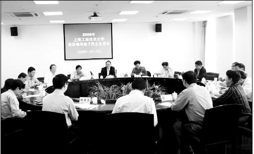 | 根据市科教党委《关于召开2006年度市科教党委系统党员领导干部民主生活会的通知》精神,校党委严格按照规定的程序和要求,于10月25日下午在松江校区行政楼306会议室召开了校党政领导班子民主生活会。 市科教党委副书记李铭俊,市委组织部副局级巡视员、宣教科技干部处处长杨建荣,市委组织部宣教科技干部处副处长宋刚,市科教党委组织干部处处长蔡桂其和我校党政领导曹伟武、汪泓、田信灿、郝建平、孙培雷、陈力华、程维明及校党委委员、党委办公室主任王小弟等同志出席了会议,我校纪委副书记陆晴云、党委组织部部长张伟林例席了会议。 会上,市科教党委副书记李铭俊同志代表市委组织部、市科教党委对我校领导班子贯彻落实科学发展观、推进科教兴市主战略工作情况的反馈意见进行了通报,对我校推进科教兴市工作给予了充分肯定和高度评价。市科教党委副书记李铭俊指出,工程大领导班子注重思想政治建设,校领导工作投入,有激情,勇于探索,大胆创新改革;以专业链、学科链对接产业链,构建产学研战略联盟,积极推进科教兴市主战略,主动服务地区经济建设,促进区域经济发展,提升了驾驭全局的能力,提升了学校的竞争力,取得了显著成绩。同时他还提出了改进要求和希望。 民主生活会上,我校党政领导班子成员认真回顾了一年以来的工作和自身建设的情况,总结经验,查找不足。会上大家推心置腹,坦诚相见,肯定了成绩,重点查找了突出问题,制定了初步整改措施。 市科教党委副书记李铭俊同志和市委组织部副局级巡视员、宣教科技干部处处长杨建荣同志对我校党政领导班子民主生活会给予了较高的评价,认为工程大党政领导班子民主生活会符合中央和市委的要求,工作扎实,准备充分,气氛和谐,与会同志态度认真,党政一把手带头剖析,认真开展了批评和自我批评;通过民主生活会,找到了差距,增进了团结,并希望校党政领导班子进一步建立健全保持党的先进性的长效机制,使管理体制和机制与学校发展相适应,使人才队伍建设与学校定位和上海发展相吻合,从而抓住新一轮发展机遇,把特色学科做大做强。 (党委组织部)