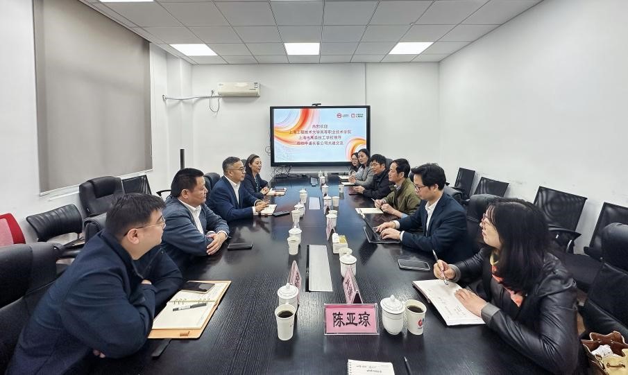 为推进上海松江经济技术开发区产教联合体建设工作,进一步深化校企合作,11月10日,高职学院党委书记王振钧、院长郑树彬、副院长朱建军和肖谦等一行7人前往上海申通长客轨道交通车辆有限公司进行共建交流,与公司党总支书记、总经理齐志新等共同召开校企共建交流会。会议由齐志新书记、总经理主持。