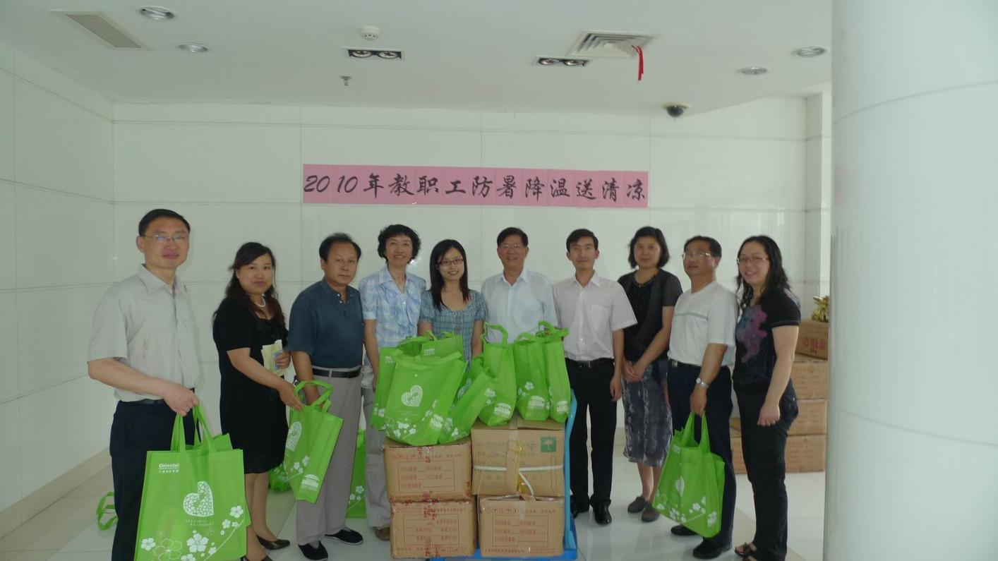 上海已步入闷热难耐的黄梅季节,我校教职工仍坚守岗位,期末监考、毕业答辩等各项工作证有条不紊地进行。为了做好关心慰问工作,近日校工会为全校教职工精心挑选了防暑降温用品(八宝米、绿豆、牙膏以及毛巾),校党委副书记、工会主席田信灿,校工会常务副主席沈海庆带领工会干部们给全校教职工送去了学校的关心和问候,希望大家在坚守各自岗位辛勤工作的同时要注意休息、保重身体。 稿件作者:校工会责任编辑:陈文琼