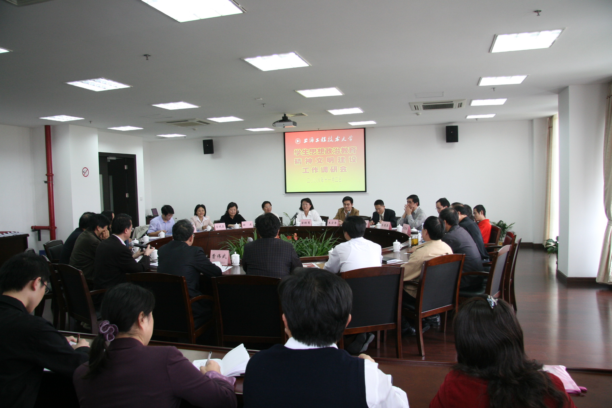 | 11月2日下午,市科教党委副书记翁铁慧一行来到我校调研学生思想政治教育工作和精神文明建设情况。翁铁慧副书记一行在副校长孙培雷等的陪同下,登上行政楼19层观光平台,鸟瞰松江大学园区全景,并前往师生活动中心走访了学生工作部(处)、产学合作教育指导中心、毕业生就业指导服务中心、学生心理辅导中心和团委。 随后,翁铁慧副书记出席了在行政楼306会议室举行的调研座谈会。参加调研会的有市科教党委宣传处和市教委德育处的负责人,校党委书记曹伟武、校长汪泓、副校长孙培雷以及学校党办、校办、组织部、宣传部、学生工作部(处)、团委、保卫处、人事处、社会科学教学部等部门的负责人和各学院党总支副书记等。 曹伟武书记在欢迎词中,对翁铁慧副书记和宣传处、德育处同志的到来表示欢迎。汪泓校长指出,加强辅导员队伍建设,既是加强和改进大学生思想政治教育的重要环节,也是提高党的执政能力、巩固党的执政地位的重要条件。孙培雷副校长就我校的学生思想政治教育工作体制、贯彻落实中央有关文件精神的情况,以及精神文明建设等内容向翁铁慧副书记和宣传处、德育处的同志作了介绍和阐述。 翁铁慧副书记对我校加强辅导员队伍建设、大学生思想政治教育和精神文明建设的做法以及所取得的成绩表示充分肯定。她指出,学校要研究具有特色的产学合作教育与思想道德教育的有机结合,总结提炼出加强和改进大学生思想政治教育工作的经验方法,市科教党委和市教委将予以大力支持。