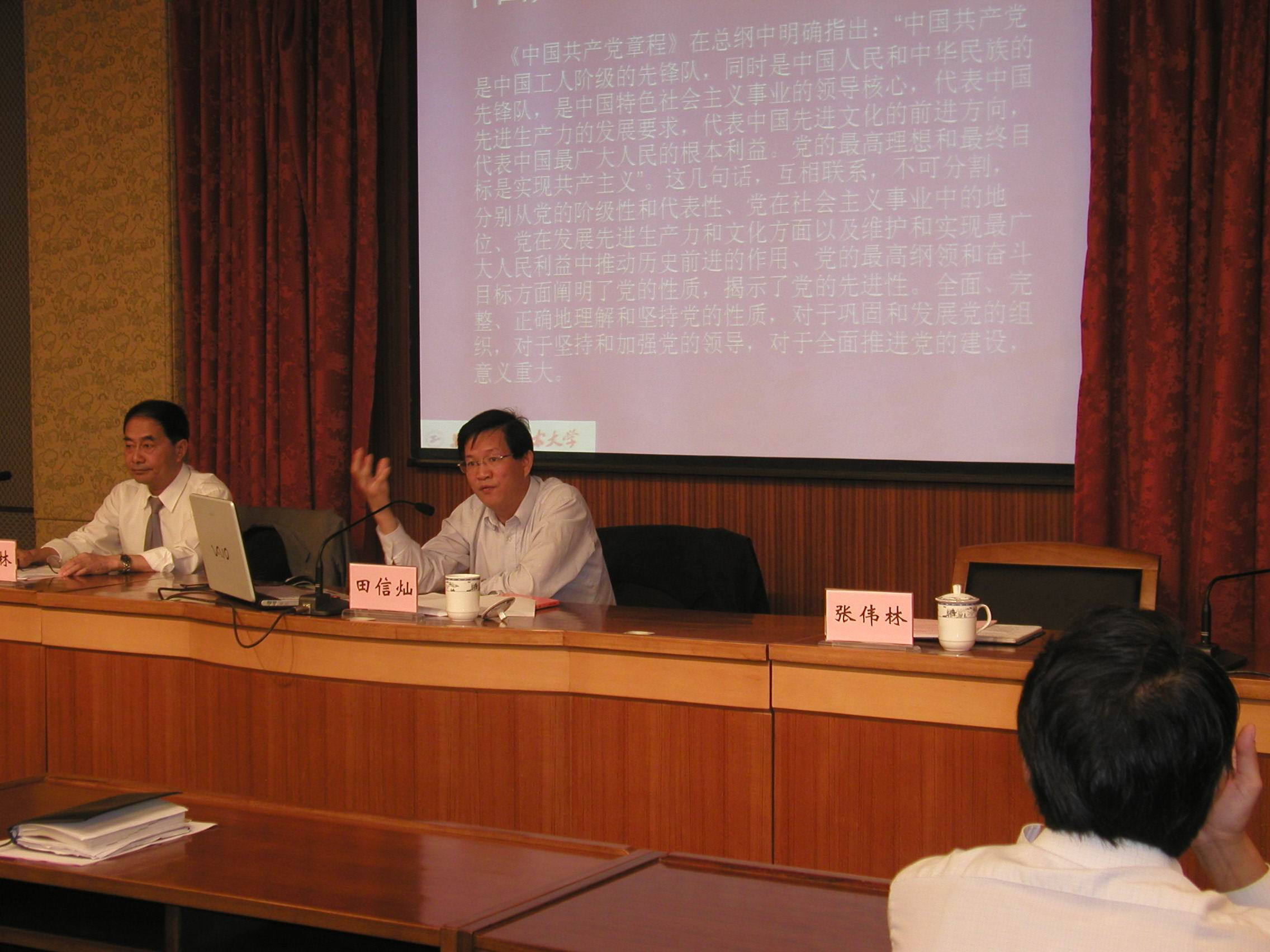 我校“第三十八期党的基础知识培训班”于10月29日上午在逸仙校区综合楼九楼第二报告厅开学,校党委副书记田信灿、组织部长张伟林出席。校党委组织员吴德林主持了开班仪式。出席本期培训班的学员共计59名,开班仪式结束后,田信灿副书记给大家上了第一课:《党的性质、指导思想、纲领和宗旨》;汪耀中为大家上了第二课:《党的组织制度、纪律和作风》。